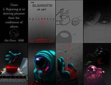 This was our first big project, which was a zine (My zine is formatted like this so when it is printed out, cut a certain way, and folded, it looks like a little book)! At the time, the game 'Among Us' was fairly popular, so I was really inspired to make a piece off of it.